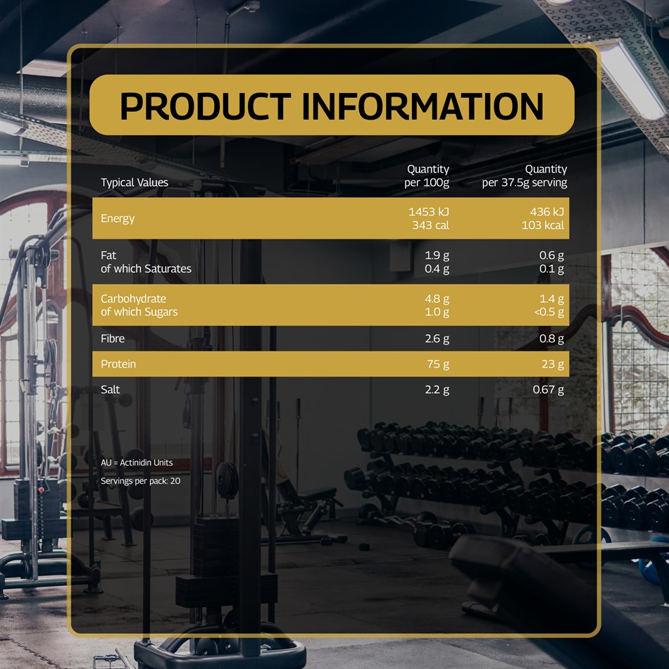 AU = Actinidin Units Servings per pack: 20 | ||
