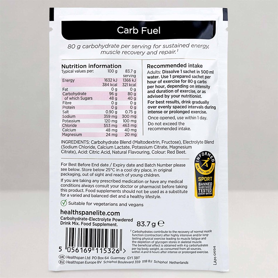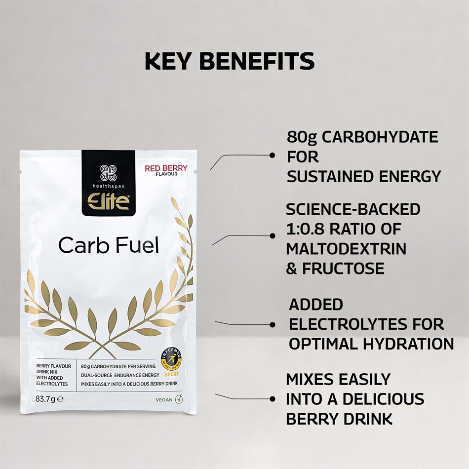Each red berry flavoured sachet delivers a powerful 80g of carbohydrates per serving in an optimal 1:0.8 ratio of maltodextrin to fructose.Carbohydrates are your body’s primary source of energy during moderate to high-intensity exercise. They’re stored in the muscles as glycogen and used to power everything from sustained endurance efforts to short bursts of intensity. When glycogen stores become depleted, fatigue sets in and performance can decline.