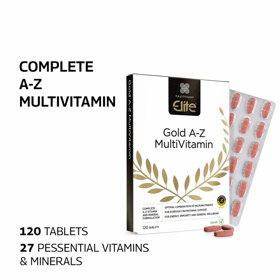 Achieving all the vitamins and minerals our bodies need on a daily basis is important for everyone, but more so for highly active people whose nutrient needs are increased. Gold A−Z MultiVitamin is a daily multi−spectrum multivitamin and mineral tablet, providing high levels of several essential vitamins and minerals as well as important micronutrients.