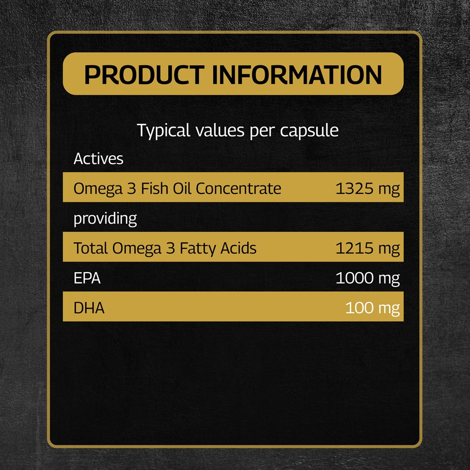 - 1,000mg of EPA Omega 3 fatty acid (plus 100mg DHA’)