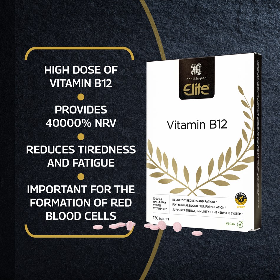 Vitamin B12 is an important vitamin necessary for the formation of red blood cells. It also plays a key role in energy−yielding metabolism, the normal function of the immune system, the reduction of tiredness and fatigue, and normal psychological function.