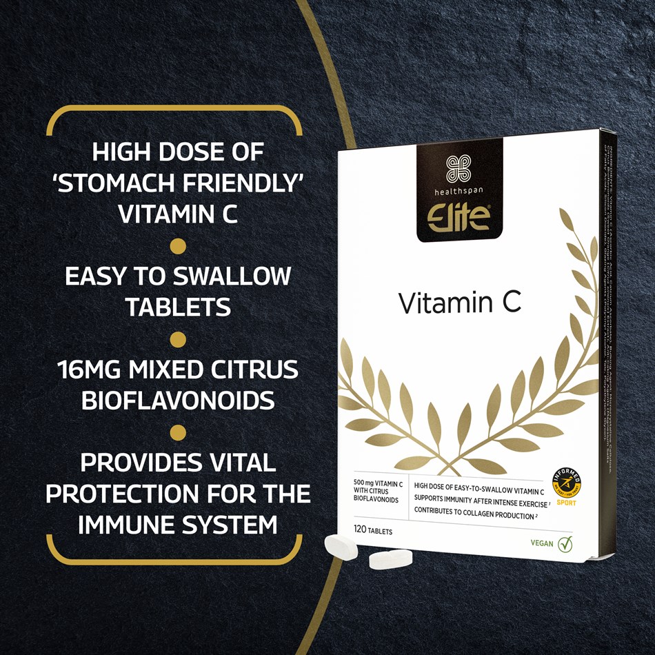 The vitamin C in our Healthspan Elite tablet is a unique combination of calcium ascorbate and ascorbic acid created under state of the art laboratory conditions. This allows us to deliver a higher dose without causing any stomach discomfort. We’ve also included citrus bioflavonoids to increase the absorption of vitamin C within the body.
